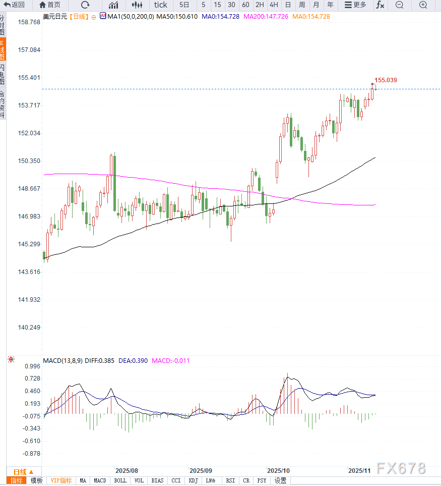 从技术面看,美元兑日元(USD/JPY)在周三突破154.50阻力位,形成新的上行动能。