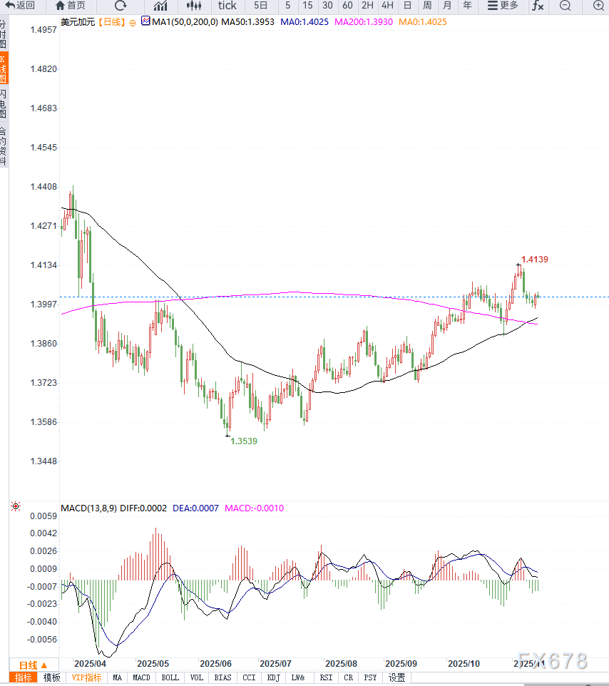 汇通财经APP讯——USD/CAD在周五亚洲时段小幅下行,交易于1.4020附近。此前汇价曾有所反弹,但受多重因素叠加影响,美元承压,加元获支撑,整体偏弱态势显现。